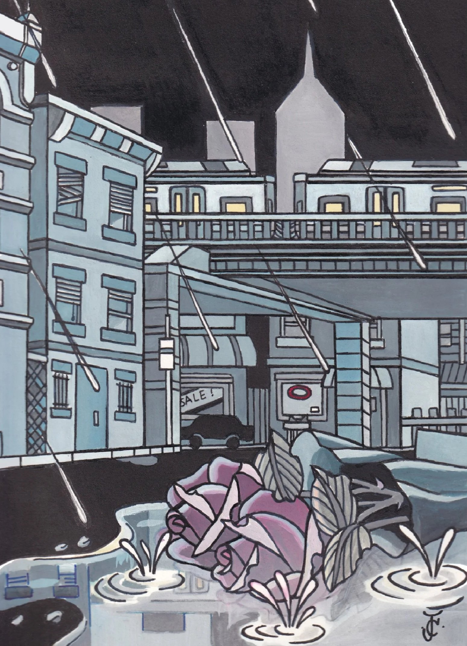 5”x7” Digital reproduction of “Fever Pitch”, A painting by Jeff Cunningham. Print comes in a clear resealable plastic bag with acid free backing board.